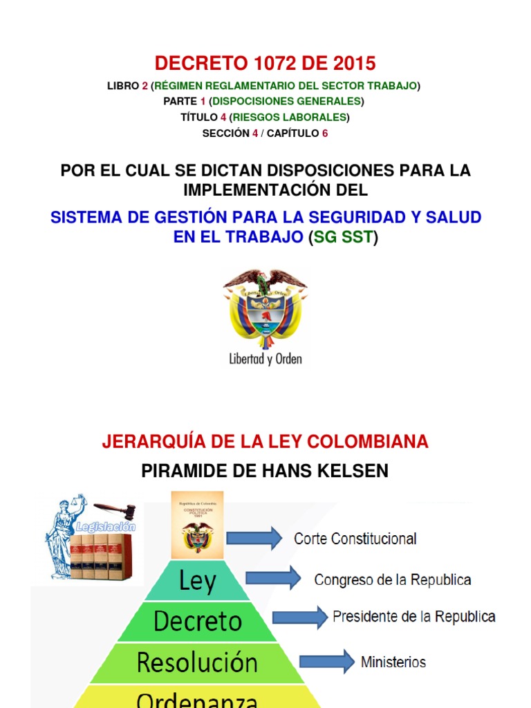 Identificación de peligros, evaluación y valoración de los riesgos. Documentos obligatorios decreto 1072 de 2015 y resolución 0312 de 2019, encuentra los procedimientos que debes tener. 7 del decreto 1072 de 2015. Decreto 1072 de 2015 de colombia. El decreto 1072 no modificó las normas preexistentes, solo las unificó.