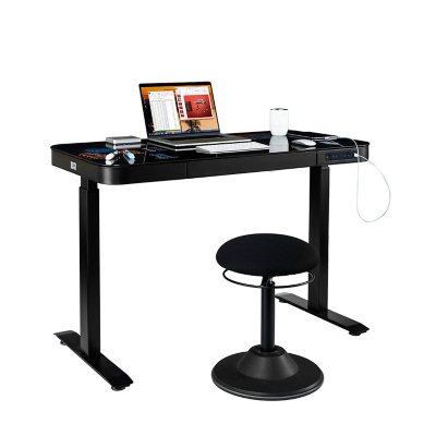 The desk also features a beveled edge for a safe and beautiful working space. Get great deals on glass with adjustable height home office furniture. This electric height adjustable desk is loaded with all the great features you need to boost your productivity and comfort. Easily accommodates dual monitor and laptop + monitor setups Upgrade your workspace with seville classics airlift® tempered glass electric standing desk with dual usb chargers.